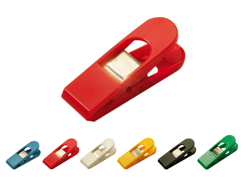 Clips in various shapes (e.g. paper clips or clothes pegs) and sizes. This version is preferably used on strip calendars.